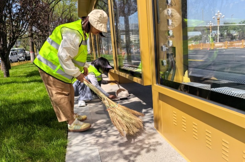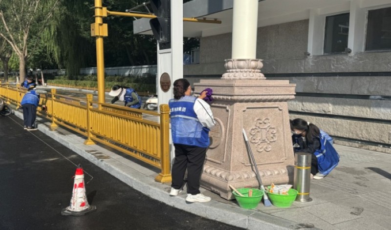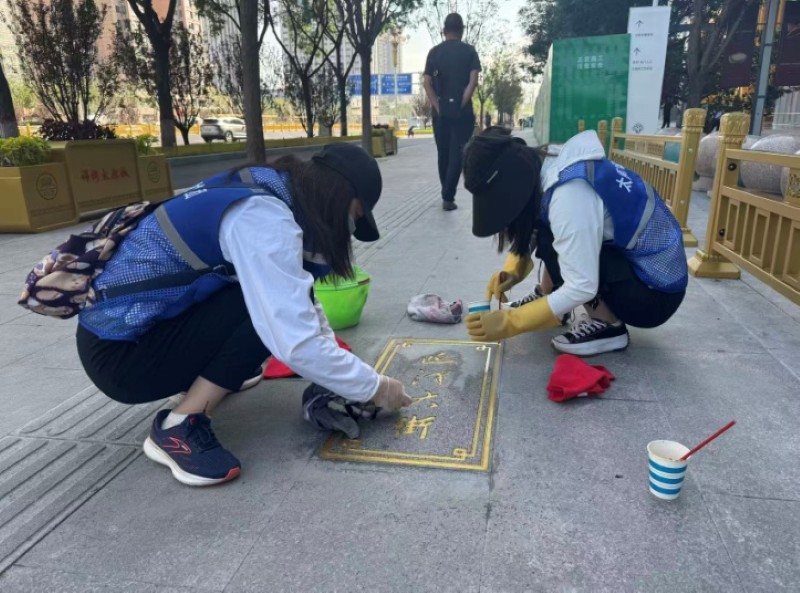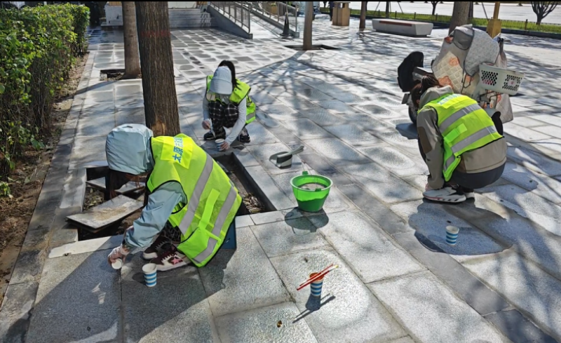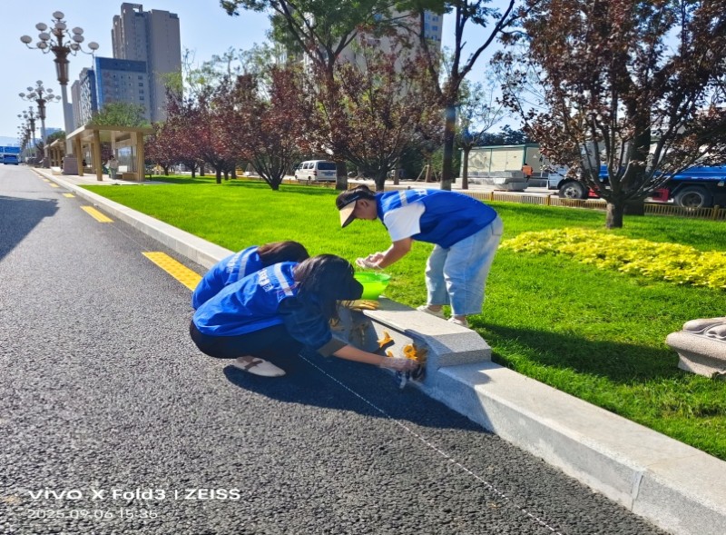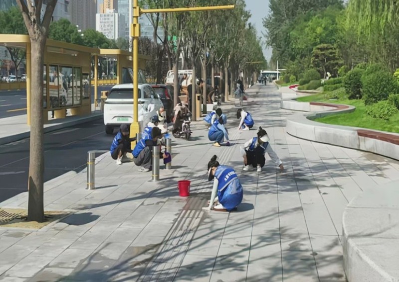 活動(dòng)自9月4日起為期六天,覆蓋迎澤大街(西段)全線,重點(diǎn)圍繞附屬設(shè)施清潔與道路精細(xì)化維護(hù)展開?;顒?dòng)中,身著統(tǒng)一藍(lán)色“太原市政集團(tuán)”馬甲的志愿者們,手持長柄擦洗器、水桶、抹布、鏟刀、掃帚等工具,對(duì)道路兩側(cè)公交站臺(tái)、路燈基地、護(hù)欄、照明燈桿等設(shè)施進(jìn)行系統(tǒng)清理與擦洗;同步推進(jìn)地磚灌縫精細(xì)化維護(hù)作業(yè),通過專業(yè)操作,確保每一條裂縫都“嚴(yán)絲合縫”,有效提升路面耐用性與通行舒適度,以實(shí)際行動(dòng)為市民出行安全與舒適保駕護(hù)航;同時(shí),志愿者專門對(duì)道路沿線的石頭字景觀展開描金作業(yè),細(xì)刷蘸取金色涂料,一筆一畫精心描摹,成為主干道上一道兼具文化氣息與視覺美感的獨(dú)特風(fēng)景。