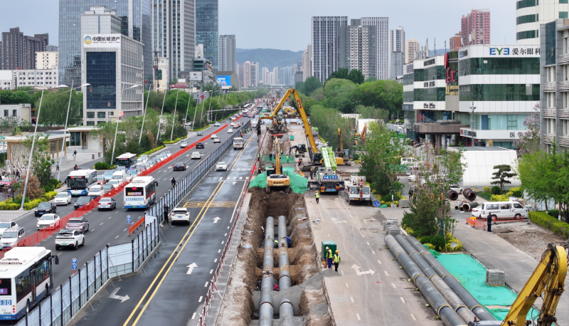 迎澤大街(西段)地下管網(wǎng)更新改造工程西起春居路,東至?xí)x祠路,全長(zhǎng)4.3公里,紅線寬度70-80 米。主要建設(shè)內(nèi)容為更新改造迎澤大街(西段)、春居北路、前進(jìn)路、公園路、千峰路、新礦院路、文興路7條道路雨水、污水、供熱、燃?xì)獾鹊叵鹿芫W(wǎng)。太原市政集團(tuán)全面踐行“忠誠(chéng)擔(dān)當(dāng)、精細(xì)極致、協(xié)同奮進(jìn)、創(chuàng)新領(lǐng)航的‘迎澤標(biāo)準(zhǔn)’”,系統(tǒng)總結(jié)迎澤大街施工經(jīng)驗(yàn),以全局思維統(tǒng)籌施工管理,以高效執(zhí)行提升工作效能,以精湛技藝雕琢城市脈絡(luò),組織1600余名施工人員第一時(shí)間完成集結(jié),240余臺(tái)機(jī)械設(shè)備以最快速度進(jìn)場(chǎng)施工,歷經(jīng)125天日夜攻堅(jiān),更換、新建雨水管線7.3公里,污水管線6.2公里,完成82萬平方米瀝青攤鋪,2.9萬平方米花崗巖人行道磚鋪裝……于9月10日順利竣工通車,新時(shí)代市政人以實(shí)干擔(dān)當(dāng),奮力書寫全面再現(xiàn)“錦繡太原城”盛景新篇章。