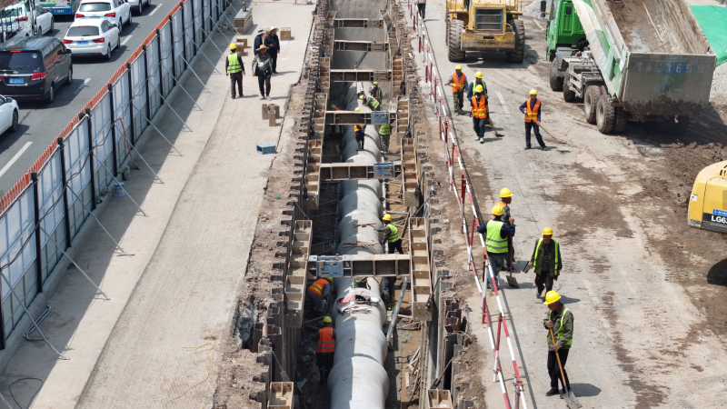 太原市政集團(tuán)堅(jiān)決扛牢使命擔(dān)當(dāng),強(qiáng)化統(tǒng)籌、多方聯(lián)動(dòng),想盡一切辦法,克服一切困難,全面對(duì)標(biāo)看齊“迎澤標(biāo)準(zhǔn)”,堅(jiān)持以全局觀念和系統(tǒng)思維謀劃推進(jìn)項(xiàng)目建設(shè),采用半幅封閉施工、平行流水作業(yè)方式,克服工程體量大、施工內(nèi)容繁重、建設(shè)工期緊張等困難與挑戰(zhàn),一體推進(jìn)道路、管線、照明、沿線景觀等建設(shè)任務(wù)。項(xiàng)目伊始,規(guī)劃“導(dǎo)航圖”,研討節(jié)點(diǎn)安排、工序銜接、資源配置等關(guān)鍵環(huán)節(jié),制定十余套專項(xiàng)施工方案,優(yōu)化組織設(shè)計(jì),形成管理閉環(huán);繪制“進(jìn)度表”,建立分級(jí)負(fù)責(zé)、動(dòng)態(tài)調(diào)整的進(jìn)度管控體系,提升9個(gè)工區(qū)自主管理效能,錨定工期目標(biāo),加快施工效率。施工過程中,掃清“攔路虎”,采用鋼板樁支護(hù)、分層開挖、放坡開挖工藝,克服地下管線復(fù)雜、開挖深度大、地下水高等難點(diǎn),確保管網(wǎng)升級(jí)與地鐵運(yùn)營(yíng)和諧并行;保持“攻堅(jiān)態(tài)勢(shì)”,針對(duì)重難點(diǎn)部位,提前制定專項(xiàng)方案,全部進(jìn)行技術(shù)交底,著重加強(qiáng)安全、質(zhì)量管控,形成高效施工態(tài)勢(shì)。注重以人為本,提升“施工溫度”,細(xì)化各項(xiàng)便民、利民措施,最大限度降低對(duì)市民日常生活的影響,保障通行需求;擦亮“市政名片”,開展道路清理志愿服務(wù)活動(dòng),用實(shí)際行動(dòng)為城市“美容”,展現(xiàn)國(guó)企擔(dān)當(dāng)。